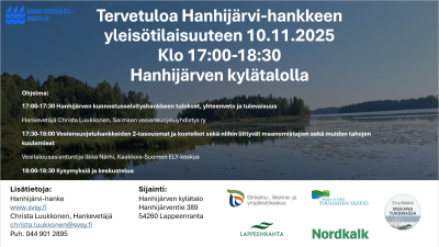 Tervetuloa Hanhijärvi-hankkeen yleisötilaisuuteen 10.11.2025 klo 17:00-18:30