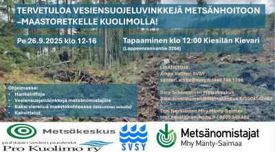 Tervetuloa Vesiensuojeluvinkkejä metsänhoitoon -maastoretkelle Kuolimolle 26.9.2025 klo 12–16. Järjestämme Saimaan Vesiensuojeluyhdistyksen Kiesilä-hankkeessa maastoretkitapahtuman yhdessä Metsäkeskuksen Kaakon vesiosaaja -hankkeen sekä Mänty-Saimaan…