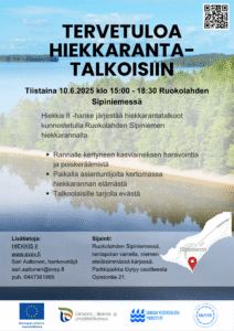 Tervetuloa talkoisiin 10.6. klo 15.30-18.00 Ruokolahden Sipiniemeen (Opistontie 21).